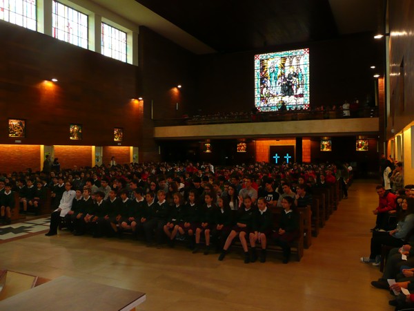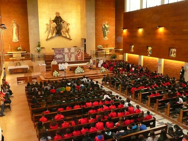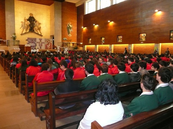 Como nos dijo en una celebreción anterior Fr. Jesús Sanz Montes, ofm, Arzobispo de Oviedo, en el escudo que todos los alumnos llevan en el pecho, se ve el escudo escolapio. Las letras A y M, de María, dentro de un círculo que representa al sol. Para llegar al sol, que es Cristo, hay que pasar por María; para descubrir la presencia de María, es necesario estar iluminados por el sol que es Jesucristo. |