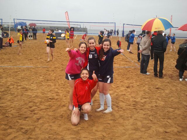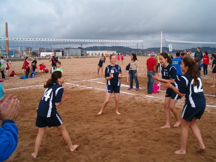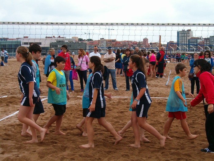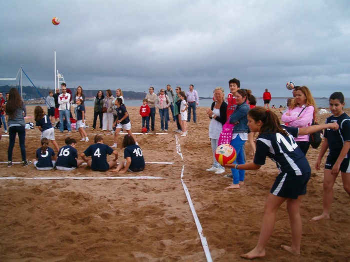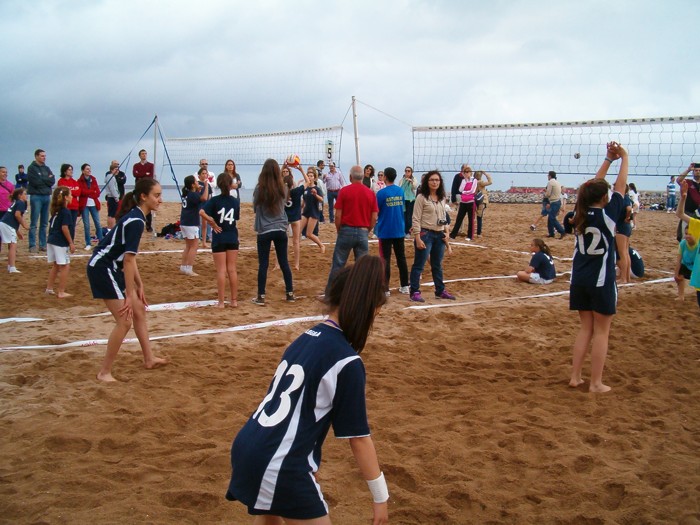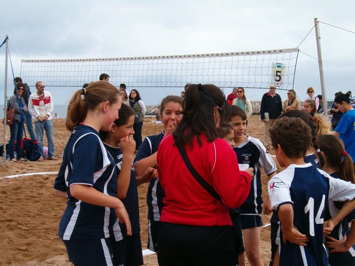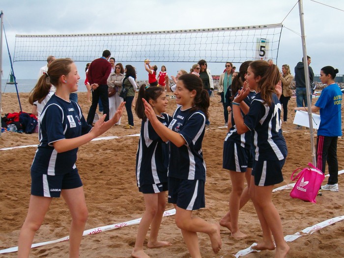 Estampa habitual en el juego del voley, donde todos nos animamos. |
